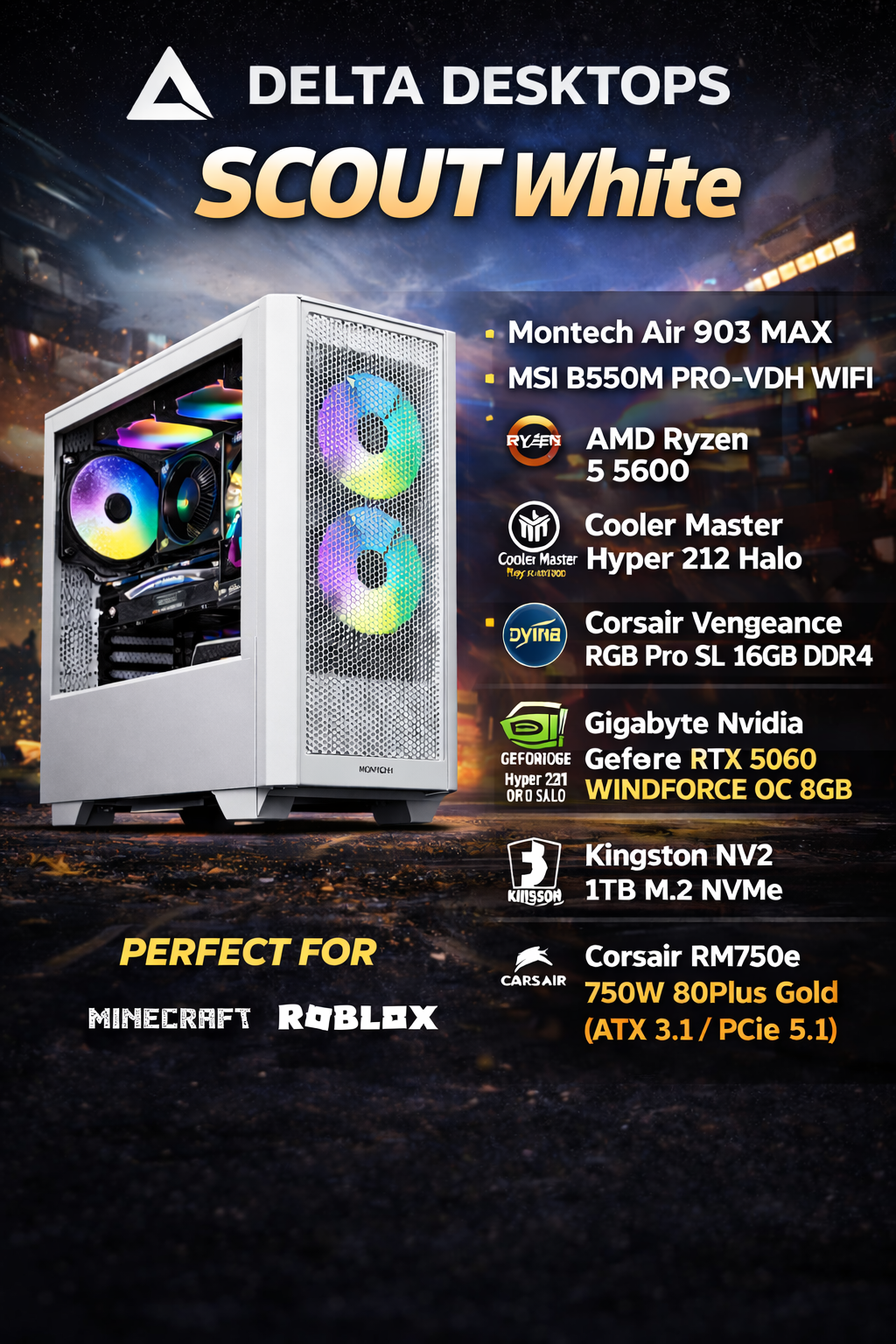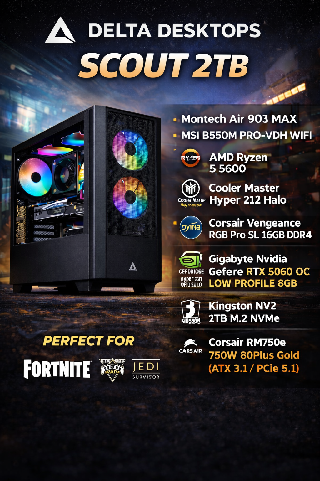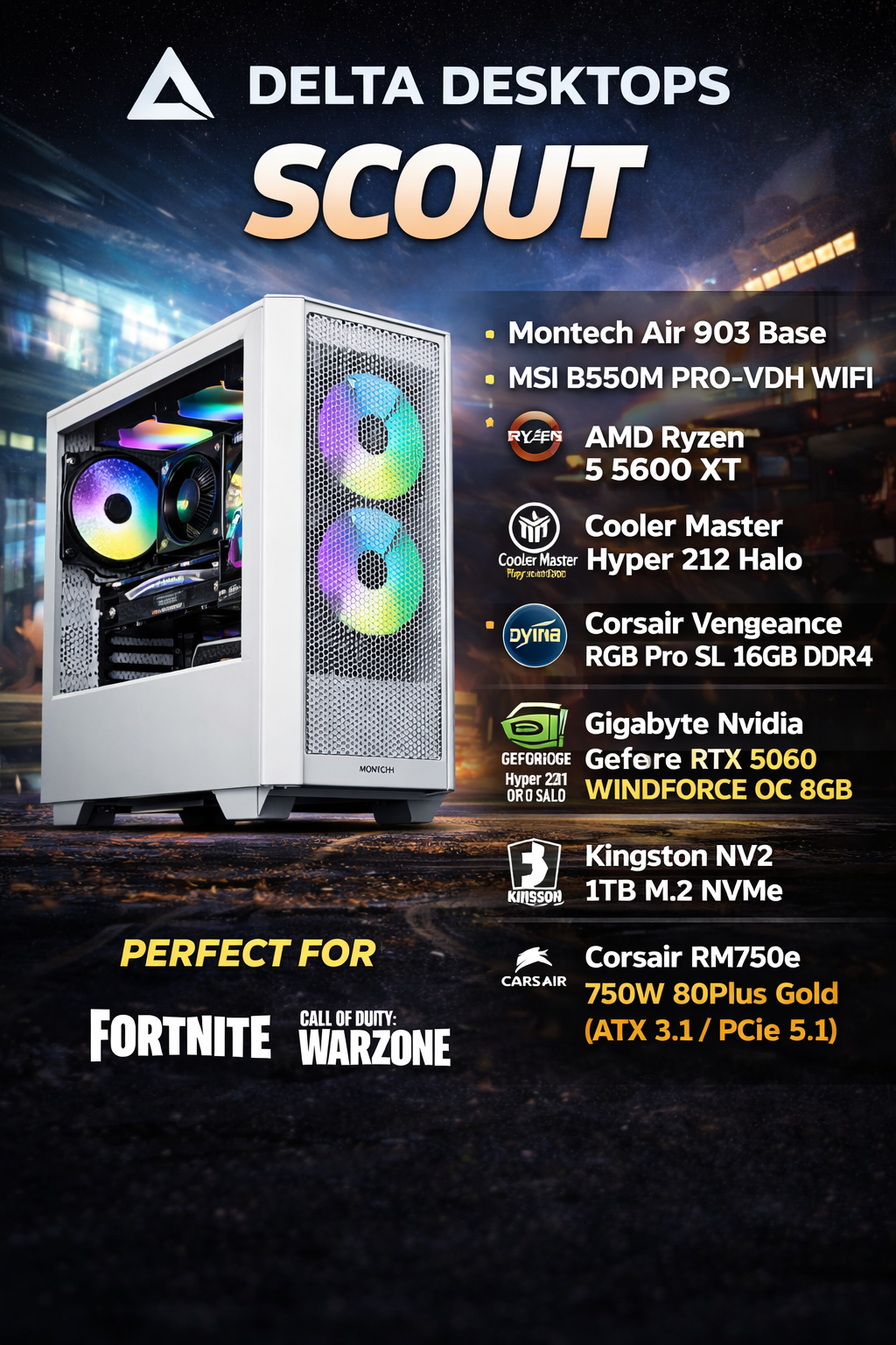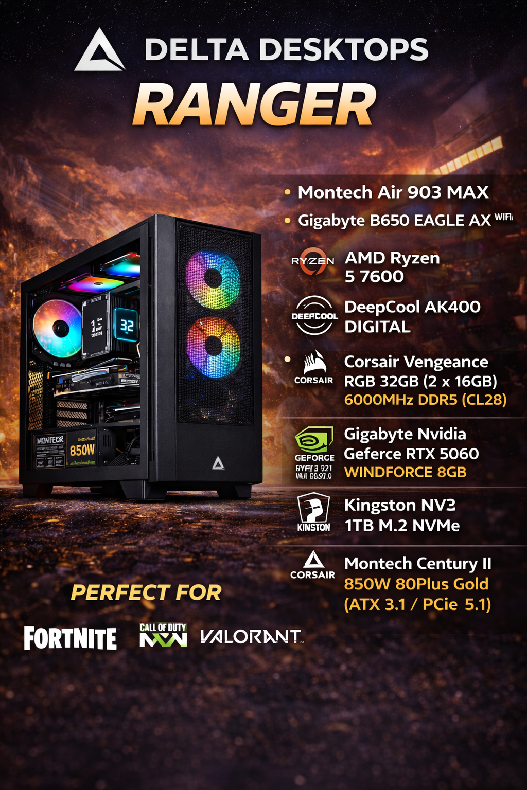 ⚙️ Built to order (5–7 working days) Unless otherwise stated | 🛡️ 2-Year Parts & Labour Warranty on all new builds | 🎮 Personalised gaming PCs are our speciality | 💬 One-to-one personal support whenever you need us | 🔥 Contact us today for a free custom quote | 🚀 Performance • Style • Reliability — That’s Delta Desktops
