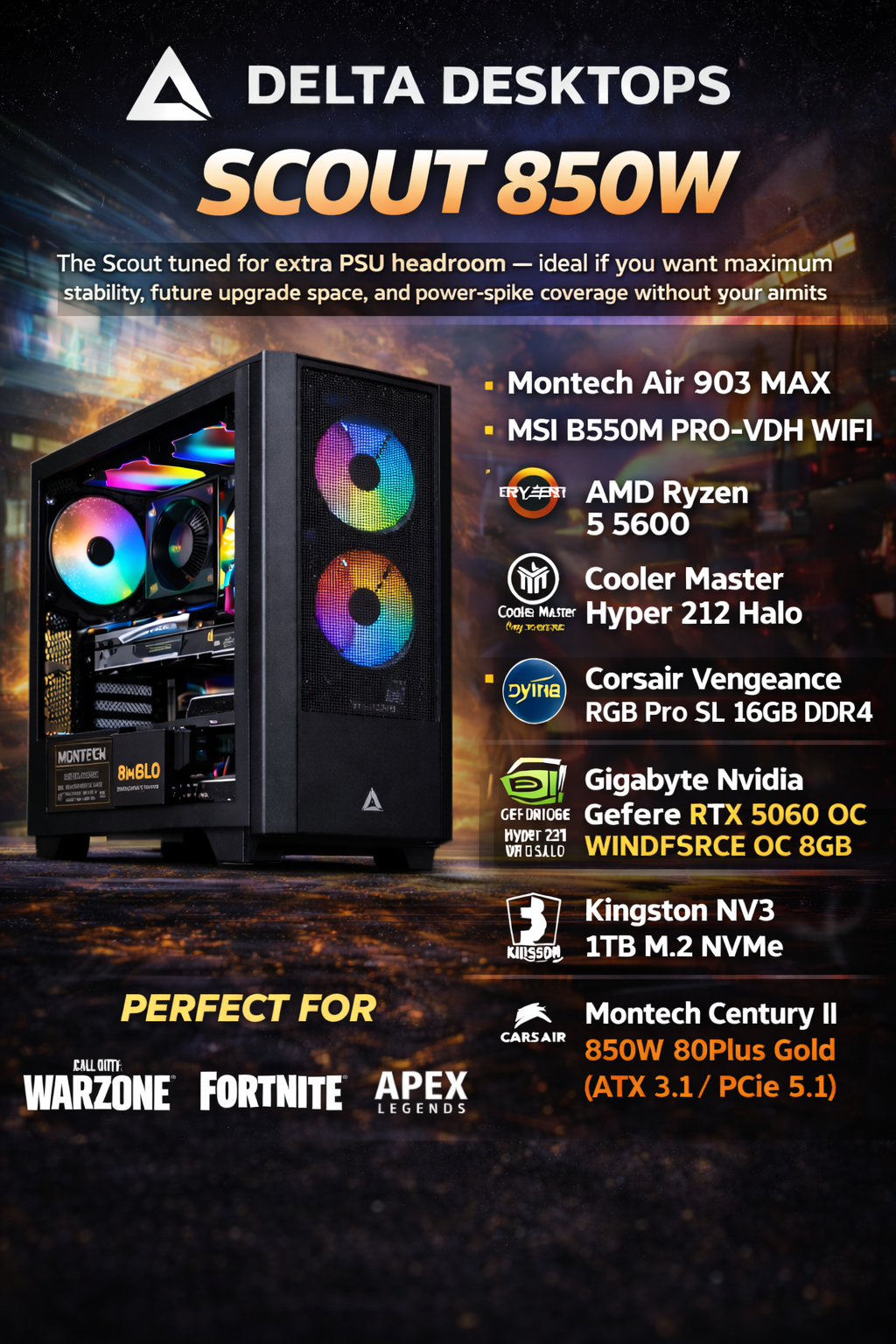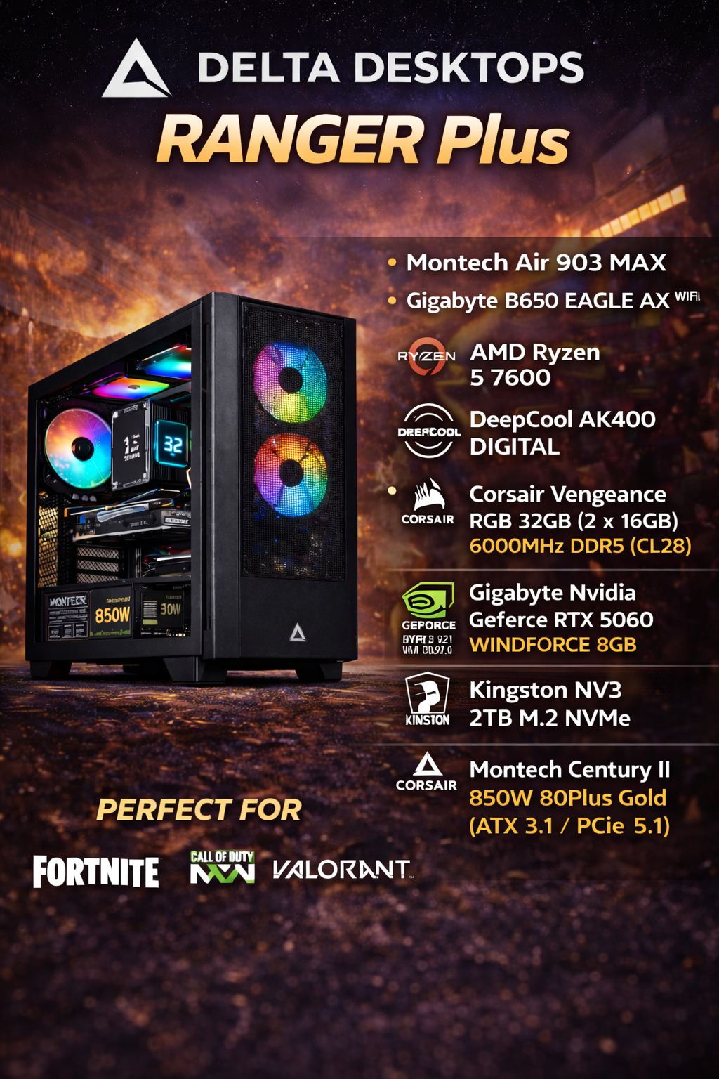 ⚙️ Built to order (5–7 working days) Unless otherwise stated | 🛡️ 2-Year Parts & Labour Warranty on all new builds | 🎮 Personalised gaming PCs are our speciality | 💬 One-to-one personal support whenever you need us | 🔥 Contact us today for a free custom quote | 🚀 Performance • Style • Reliability — That’s Delta Desktops